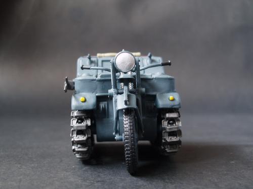 刚做好一个履带式摩托,看到这里有比赛就来捧捧场,不求名次,只求参与。没旧化,怕油画颜料流到里面去搽不干净,就来个清爽风格的。只加了2个251上的仪表水贴,全车德国灰手涂。