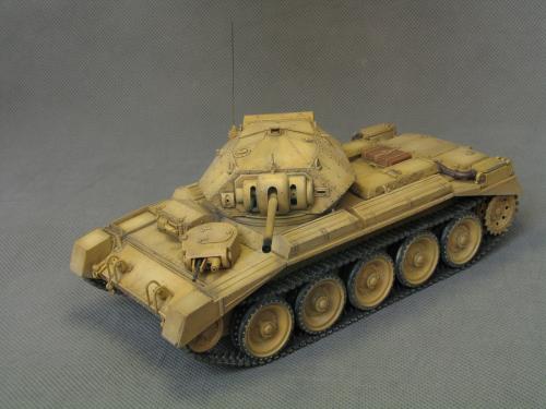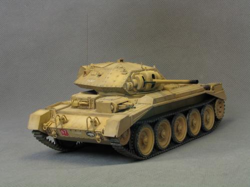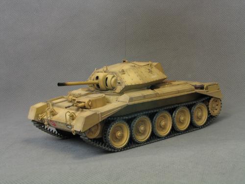 英国曾一度将坦克分为步兵坦克和巡洋坦克。步兵坦克装甲较厚,机动性能较差,用于伴随步兵作战。巡洋坦克装甲较薄,机动性能较强,用于机动作战。“十字军”CRUSADER巡洋坦克,战斗全重19.03吨,车长5.97米,车宽2.77米,车高2.44米,装备40mm2棒MK1火炮一门,备弹130发,7.92mm Besa辅助机枪2挺备弹4700发,采用了克里斯蒂式行动装置,共生产5300余辆。 最近一直在做英军的东西,感觉这个“十字军”巡洋坦克很有特色,多炮塔主义~~~~就选了这个参加比赛了。 意大利的模具,组合度一般,制作起来感觉还行。制作过程中遇到的最大问题是,履带太硬太硬,由于“十字军”行走装置没有托代轮,要做成履带的下垂感有点麻烦,用了较多的泰勒快干胶才搞定。由于是在沙漠地区作战,只做了一点掉漆。
