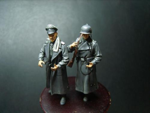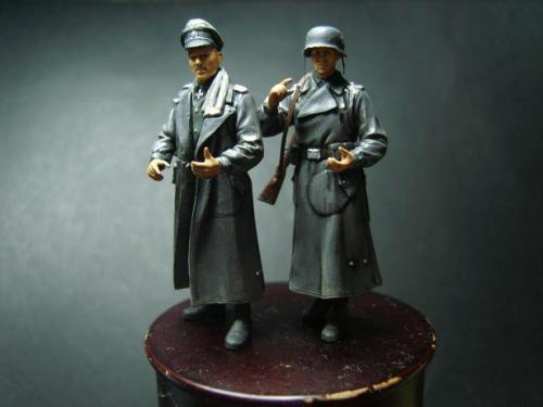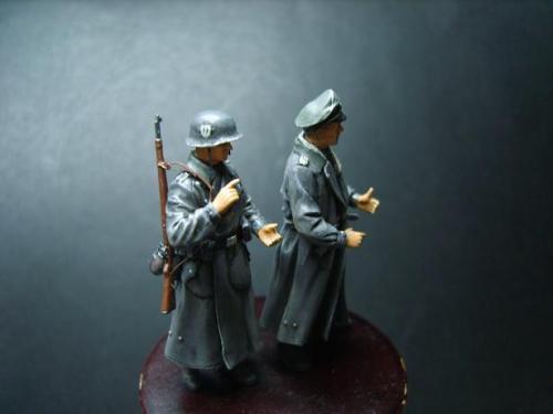 龙的经典老模版。经典的人物。。追加了步枪的枪带和扣子,以及钢盔两边的头盔带。调换了两人的右手。这样我觉得舒服一点。。最后给军官配上一个文件包就好了~