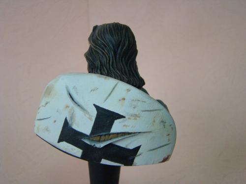 整体感觉不错,切细节上的上色旧化和很不错,但作为一款大比例作品,其外衣,头发,面部等的色彩变化还可以再丰富一些,这样能更突显出作品的视觉效果。 |