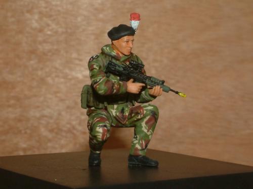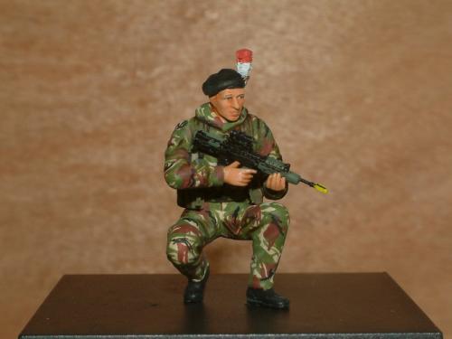 作完德军工兵后还有时间,就争取时间再作一个。英国皇家燧发枪团步兵参考的是《军工厂》的一些资料。用龙的3013沙漠英军改的。龙的老版太肉了没作出什么细节。我觉的贝雷帽上的红白羽毛很好看。尝试用刀在流道削了个“鸡毛掸”效果还可以。还在枪口套个演习用的黄“套套”。。