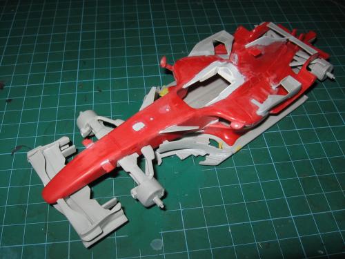 套材用revell 1/24 F2007,油漆使用了Finisher's Mica Red 云母红。利华的这套模型组合度还过得去,但翼片非常的厚,打磨要费一定的工夫。制作时参考了实车图片,做了一些改造,如前鼻锥开孔。制作过程中还发生了意外,某个零件不见了,只有自制。