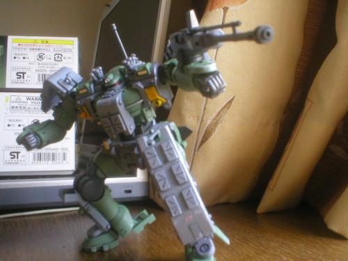 1/144的铁人,追加了细节,如刻划线,柳钉,把手,舱门,反应装甲等等。也增加了部分关节的活动性。虽然没有工程量很大的改造,不过也花费了许多心机与诚意。