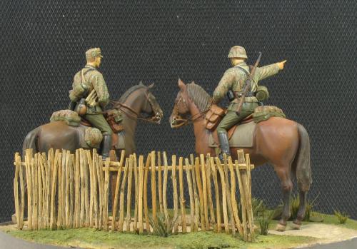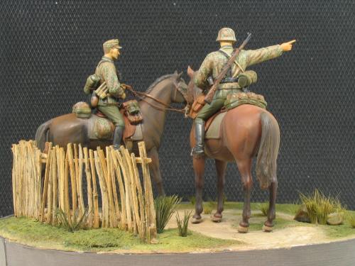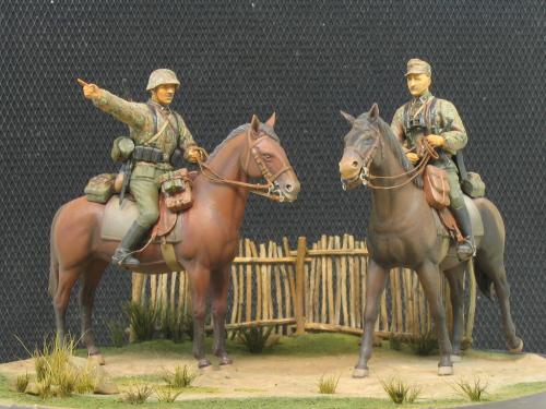 威龙1:35 6046,兄弟目前还没培养出什么德国情节,所以大幅度改造就算了。 主要就是用奶粉罐上的铝皮做了缰绳,用铜丝弯成一些钩子和铜环。 这次没去花园里扒干土,用石膏浇了地台,草坪是锯了点木屑,刷上白胶撒上去的,草丛是找了支破排笔,剪了些毛玩了一把插秧。 马匹适当做了些混色,反正就这样了,继续平民化。