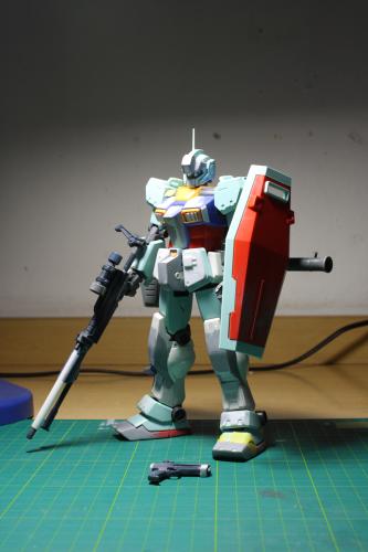 利用Bandai MG的GM C型和Ka版高达套件,加以简单修改制作出MSV中号称一年中最强GM的GM狙击手特装型,修改主要以FIX0032为基准进行外形的改造,使用胶版和补土在原套件基础上添加一些特征。喷涂使用郡士Mr.color系列油性漆,配色均通过基本色的混合完成,最后添加水贴,并做轻微洗渍 这次制作是我首次利用套件进行修改做出自己心目中的机体,也练习了基本改造方法,虽然不是特别熟练,中间也体会到了从平面图像到立体模型的困难和乐趣,希望通过参赛进一步加深与各位模友的交流,分享快乐