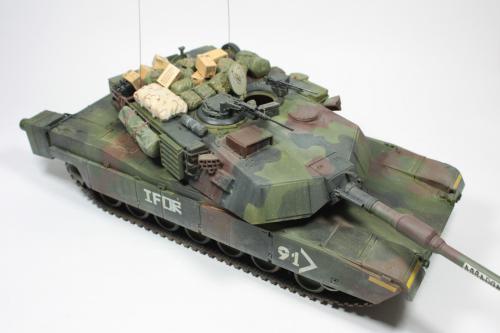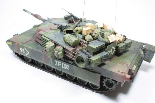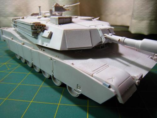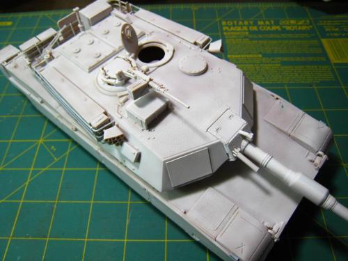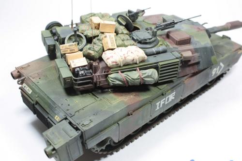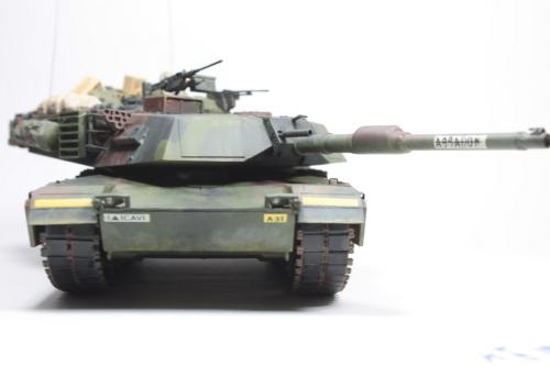 本次参赛作品,采用号手早期的M1A1套件,总体来说,套件性价比不错,相对现在龙的新品细节是没法比,炮塔有着致命的错误,自己用胶板修改了一下,用铜丝,大头针改了写把手,履带采用的橡胶履带,简单省事些,其他基本直做无改。
