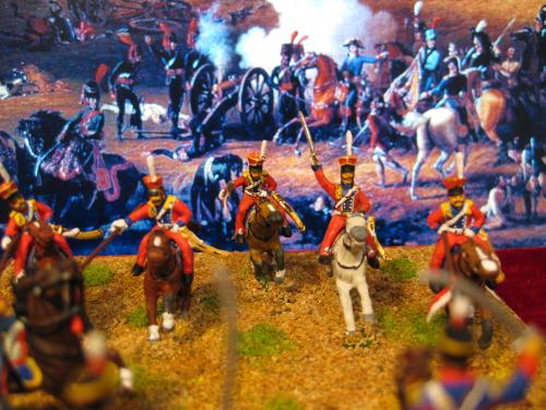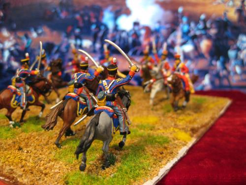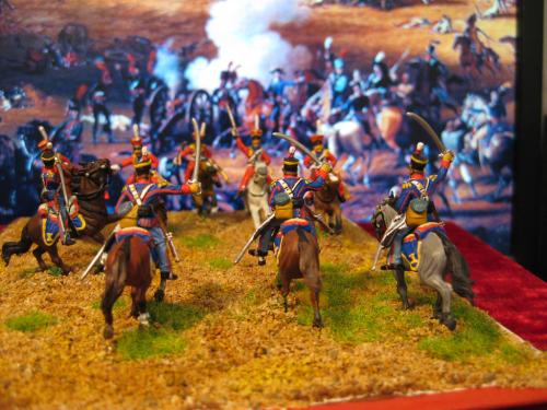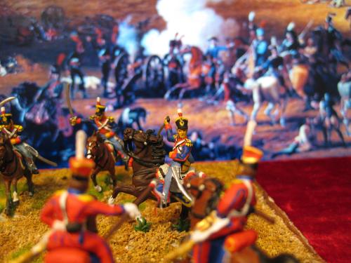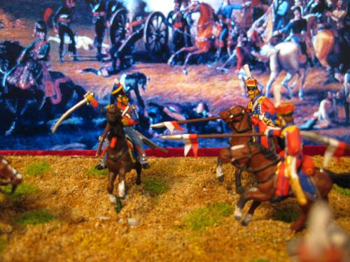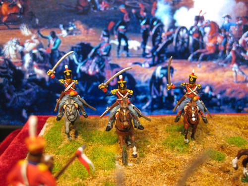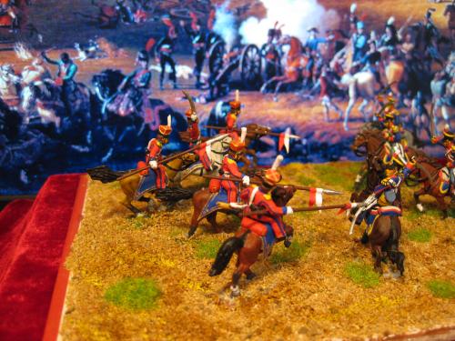 枪骑兵是用Strelets的俄国乌兰骑兵改的,长矛是换过的,鞍褥是纸片改造的。 KGL直接用的意大利的6094。 自己检讨下,红色枪骑兵做的粗糙了,场景地面也很马虎.....