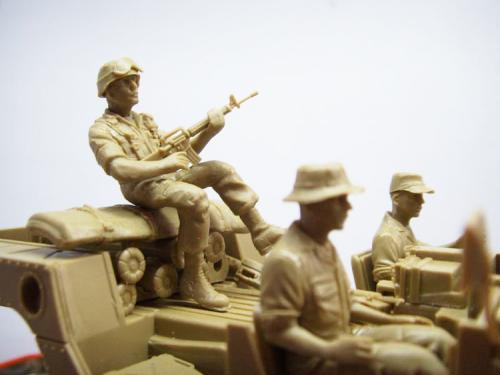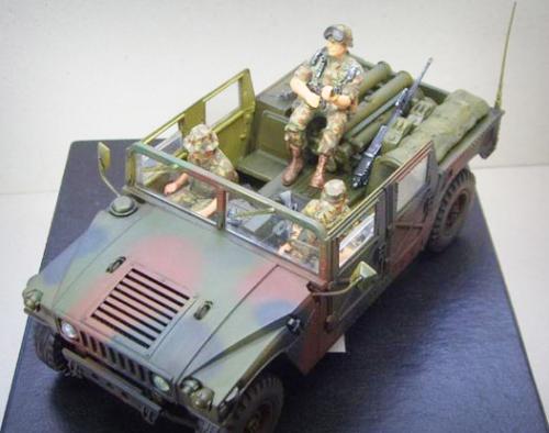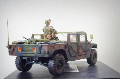编号9?开始以为是模型编号呢,后来想想应该是战术编号,实在是找不出战术编号9的车辆,找来了爱的美的M966悍马车,就算有了一个9了,呵呵,虽然牵强,总比没有的好啊。 制作上除了打磨费了点时间,其他组合还算不错,兵人手涂,没啥技术含量,完全按照封绘涂的,手艺差,只是不想带来的兵人浪费了,另外拍照还有点生机! 没用任何补品,直做! 制作心得:就是玩儿,好玩儿! 家里相机是在对不起观众,210w像素的,拍得也不咋地,中间的车太小了,所以用ps剪切了一下,不知道怎么搞得,变得这么小了,问了朋友,才知道,相机拍照的照片就800*600,不是最高的品质,我倒~~~~~~~~没办法,参加比赛就是我最大的娱乐了,希望我的参与,没有影响比赛的顺利进行,下次比赛可得借个好点的相机~~~