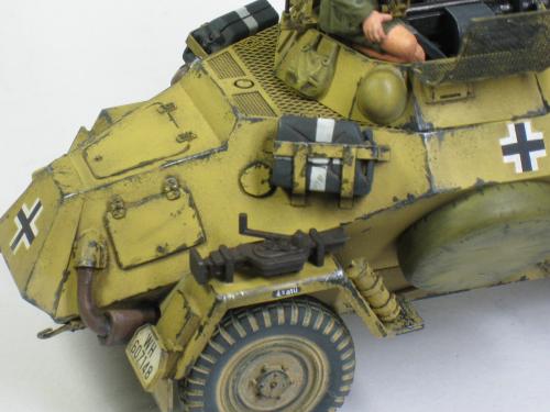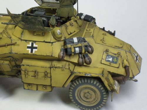 使用田宫35286德军222装甲侦察车套件。自制油桶固定架。