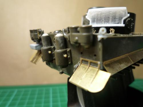 5.车身侧面挂缆具自制 本来没有将这个改造放上计划,但是参考虎式现图发现威望的该细节严重错误,零件里的挂具布局是后期型的,为了里程碑般的标准版,改了!