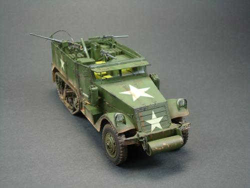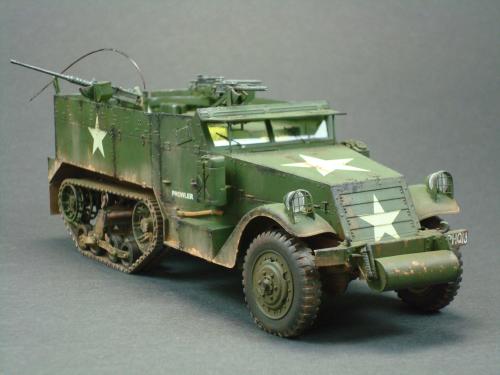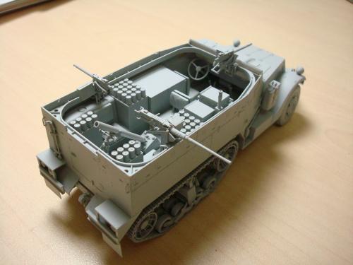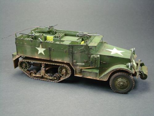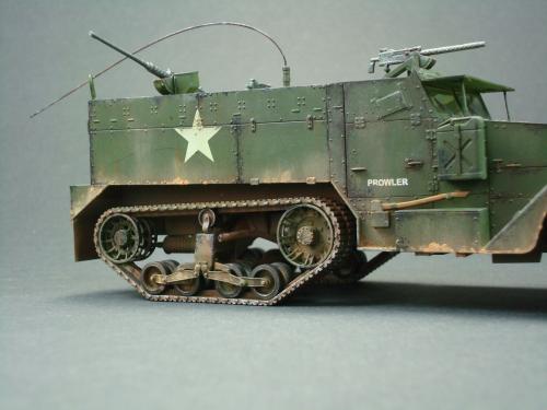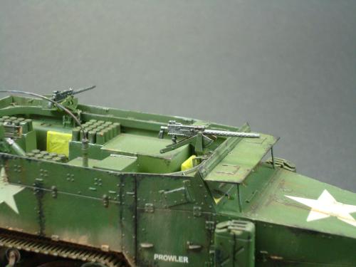 套件:港龙6361 使用套件内含蚀刻片 第一次尝试海绵掉漆。渍洗,滤镜等沿用老手法。 纯粹为了娱乐,左右各加装机枪一挺,并在车体一侧做出弹药箱打开状态。
