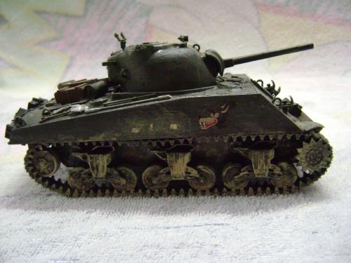 田宫的1:35 M4A3 75MM炮版件。用XF-62加少量X-2(全车手涂),上色完了以后,用土黄扫了好多遍,然后渣洗。全车没做多大改进。(这是我第一次做模型)