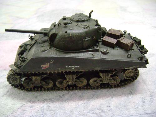 田宫的1:35 M4A3 75MM炮版件。用XF-62加少量X-2,上色完了以后,用土黄扫了好多遍,然后渣洗。全车没做多大改进。(这是我第一次做模型)