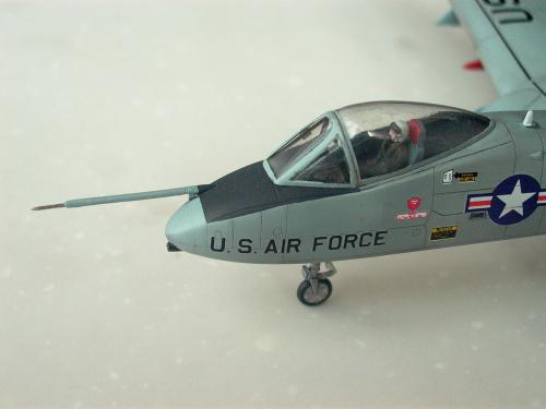 本体制作的相当的不错,打磨和刻线上都下了功夫,鸡头部分再磨细点会更好;上色方面比较工整,前风挡处漆面不是很满意,包括前空速管似乎有点随意;风挡似乎没有遮盖好,透明度在照片上不是很高。摄影上最好选择深色的背景,反光不要太强烈;改造上面,仪表版是不错的 |