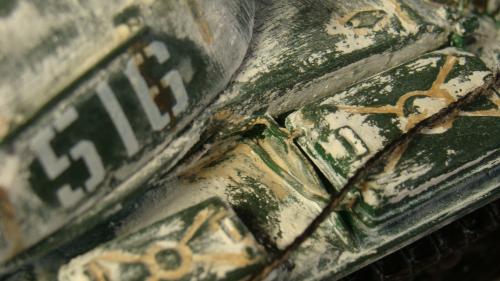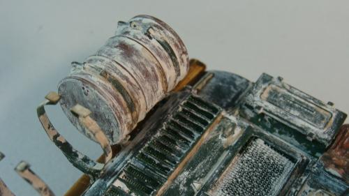 拙作一个 重在参与 希望论坛越办越好! 品牌:西西利 铁丝和易拉罐铝皮追加了一些细节 使用石膏刷白 个人认为跟接近于石灰的质感 路轮和履带突出雪地行走中湿和黑脏的特点 履带换了 做出下垂感!
