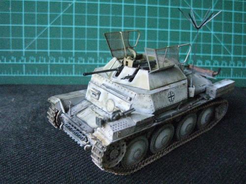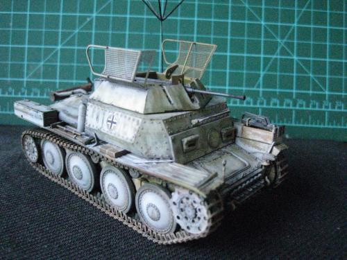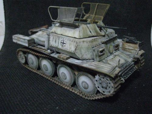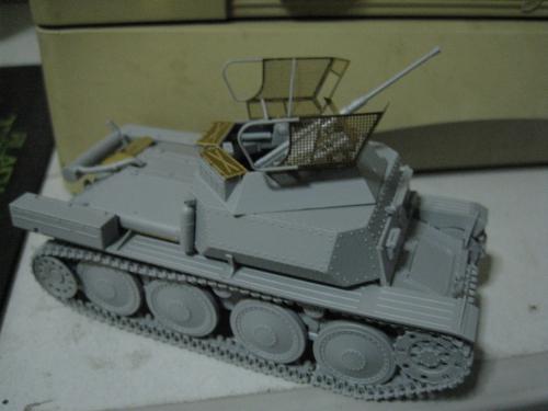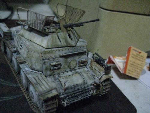 龙的6294 38T侦查型,德军利用38T底盘改装的轻型侦查车辆,广泛活动在东线。这个车型算是38T系列中比较有特的,而且套件给的辅料充足,所以只对排气管稍作修改,其他直做,在完成素组后我首先使用1000号水补土打底,在水补土干透后用盖亚的锈红做阴影,再用君士的油性德国三色套漆喷了主色。然后用田宫的水性消光白喷全车,上了一道田水光油。完全干透后用棉签蘸水性溶剂在战车边角蹭掉白色的漆层,使底色露初,在用君士旧化套漆中的铁锈和黑铁色点掉漆,最后用黑色马克笔强化。 然后用田宫的珐琅漆红棕稀释液滋洗全车,在滋洗液彻底干透后用面相笔蘸黑色和红棕混合的珐琅漆稀释液做渗线,完工后用棉签蘸取法郎溶剂顺流水方向擦洗掉多余的珐琅漆,底盘和排气管用AFV的天然土做了少许修饰,最后喷了道消光保护漆。