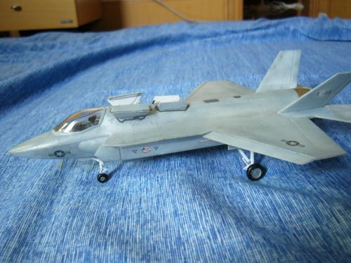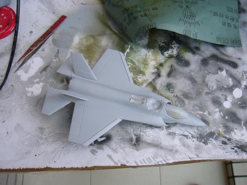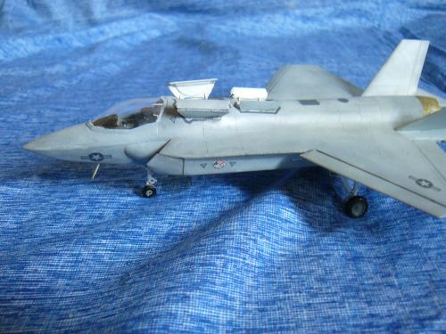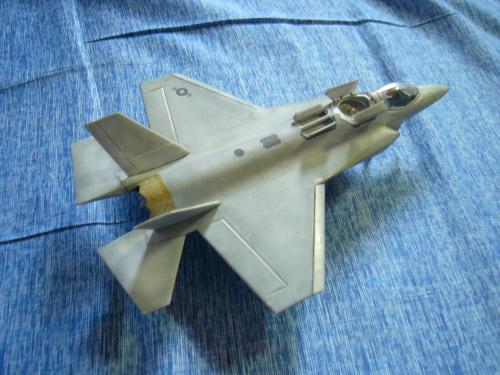 田的东西.组合良好.相对组装比较简单一些.把机翼前缘做少许改造.升力风扇打开状.油漆使用田的.因为是现代隐形飞机,必定先进的可以.所以轻微加深刻线.只做了色差.时间来不及了,本来还想再做一下的...