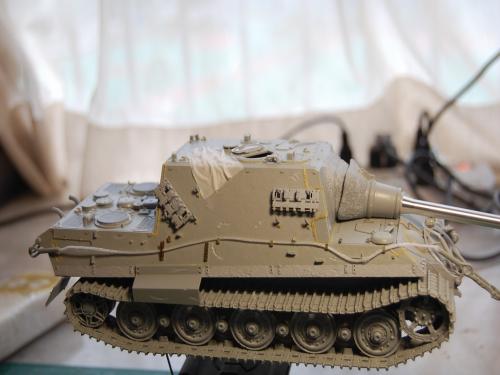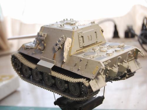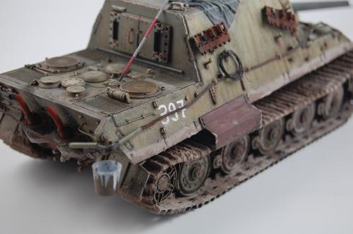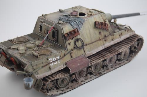 本次制作的猎虎是威龙的6285,此款猎虎组合度和精确度都不错,只是稍微有点小细节不胜满意。 此次参赛的猎虎涂装 是参考了 MIG的 猎虎 ,主要的设定是刚从战场拉下来 准备大修!又或者说是作为靶车,呵呵。 细节方面,用AB补土追加了焊接纹,还有用废弃的PE 做了一些细节上的改动,包括铰链等等。。。。 至于涂装方面,主色还是应用了 德国暖黄,喷涂手法尝试了一下CM大法,还是不得要领,要继续摸索,哈哈哈 泥土 还是用了MIG的天然土,主要表达 干湿,不过后期还是做得不明显。。。 弹坑的制作 ,打磨然后用补土周围蕉一圈。最后用防锈红体现出底色,不过这次拍摄 实在不咋样!以后要多多研究摄影! 好了,这次制作猎虎就差不多这些内容!! 辛苦各位,评审了!