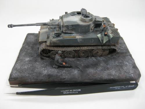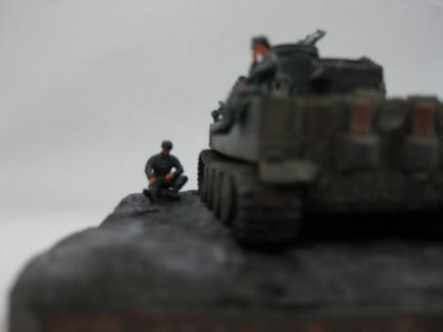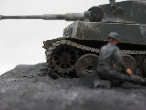 威龙的极初期虎式坦克为主体,外加利华的三号坦克后备箱。兵人分别来自意大利的非洲军团和威龙的虎王里的伞兵。111号的考证:灰色车体加上极初期虎式坦克的外形,还有冬季的白色迷彩。具体可见最后的两张图片。