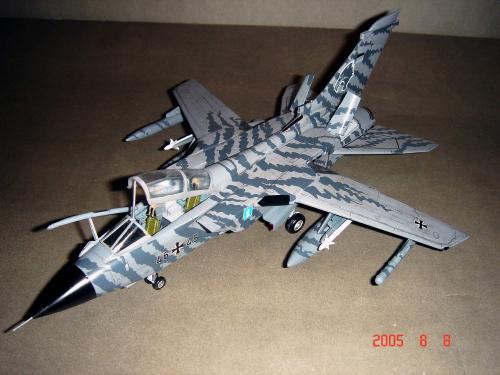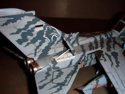 这个虎纹的颜色是比较难做的,做得还是不错的,可惜摄影没摄好,气势没出来,现代战机座仓盖一定要亮才好看,座仓处理还需加强 |