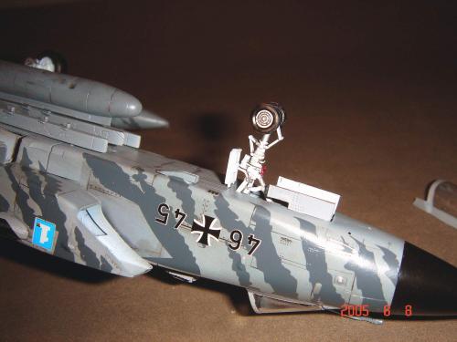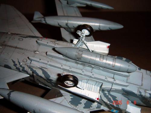 基本制作不错,配色上面颜色有点偏兰,应该灰一些。坐舱看出用心了,不过HUD不是整块蓝色,仪表盘面扫的有点过了,磨损不是这样的。渍洗不错,只是机腹下有的地方没擦干净,起落架仓那最好也洗一下;全机最好最后消光一下,有点亮了。摄影的时候,尽量少用闪光灯。照片还是不符合规范 |