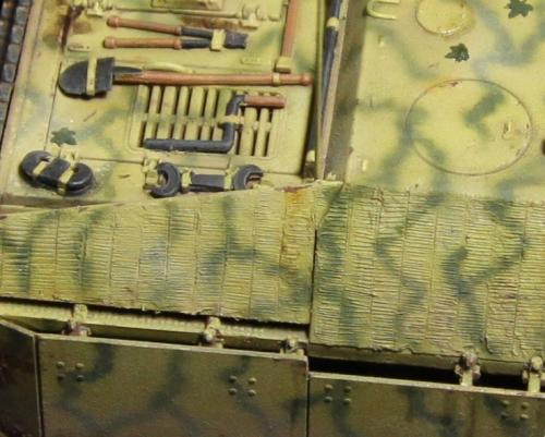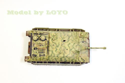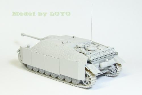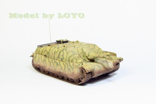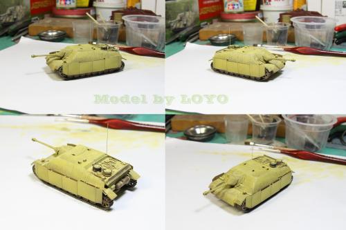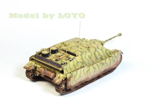 使用了龙的7276 尝试用田的灰补戳了防磁 只可远观不可近观 使用铜丝和蚀刻片边角料改了部分小零件 上色参照116装甲师第228驱逐大队1944年7月下旬在 诺曼底的Argentan 地区的涂装 战车状态模仿盛夏7月 大雨过后泥泞的法国诺曼底地区作战的116装甲师第228驱逐大队的一辆四号坦克歼击车 所以旧化处理上 特别在战车底盘的一些部位 手法比较重