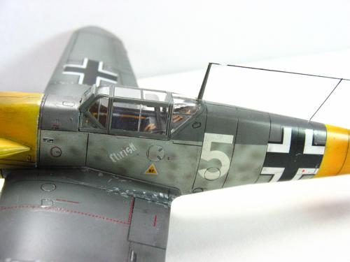 制作上基本没有大的改动,自行增加了一些座舱细节,安全带和刹车线.制作还是比较顺利的.最遗憾的就是RLM74白色加多了,非常的浅,再加上光线的问题,照片上几乎看不出迷彩的边界了...