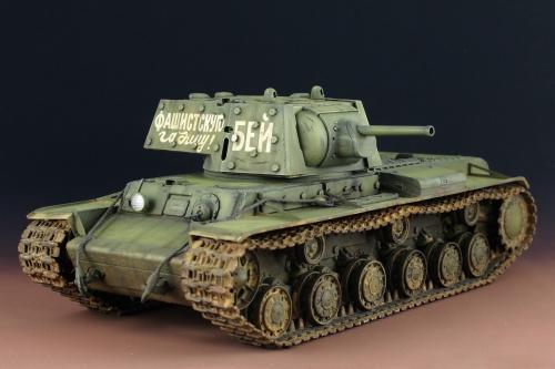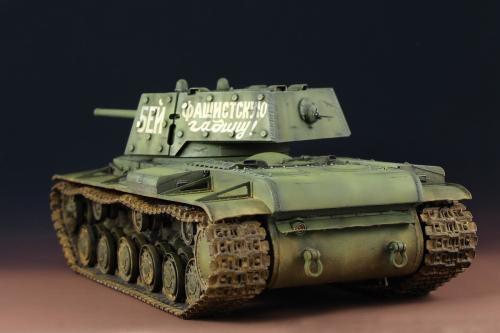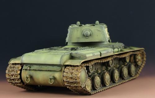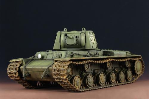 主要套材来自号手的00357,田宫水性漆整体上色,旧化大部分是靠MIG土完成的。 细节方面:我用流道重新制作焊线;钢板的边缘用电动打磨工具打磨出锻纹;又用打磨工具在坦克易磨损的一些地方制作较深的划痕;用香一点点加热受撞击的部位,使其产生变形;钢索头缺少钢索绕上去的细节,需要自己用铜线追加。 难点:最难的地方应该是苏军早期绿的配色上,我翻阅了很多历史图片,参照了很多彩图,经自己总结,调出了这种特殊的绿色,配方如下:加入少量的XF-3调出黄绿色,再用XF-26把颜色调得更翠一些,然后混入一些XF-81调橄榄色,根据感觉可以加入一些XF-62调出深一点的橄榄色,最后用XF-57和XF-60调出略带黄色的感觉。总之,根据网上的实物照片和包装的封绘,我认为二战早期的苏军绿是一种发黄绿的效果。 制作心得:号手的这套KV1,制作起来必须依靠电动打磨工具,否则过多的推出孔填补后,再用手来打磨,会累死自己的!另外就是溜缝胶在这个模型上产生了很大的作用,所有划痕都是用它进行最后腐蚀的,效果非常自然。 最后,就是希望大家能喜欢我这个绿色的感觉,谢谢!
