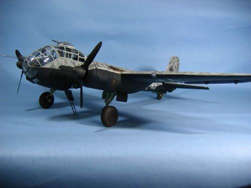 坐舱改的不错,色彩也很适合,色彩上面,虽然是夜间轰炸机,黑色的部分可以稍微做点偏差,可以再用点粉彩修饰一下烟熏和轮子 |