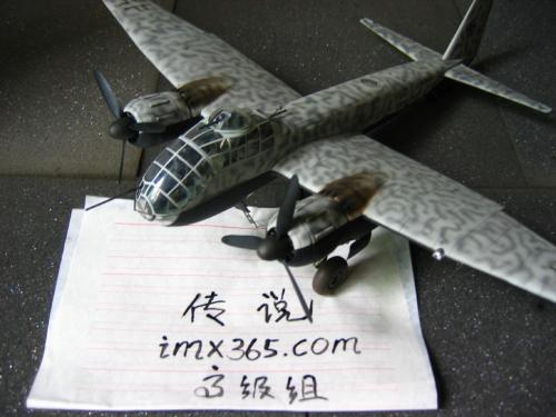 这次使用的是龙早期的套件,东西比较老,材质较硬,打磨组装都很麻烦。机身机翼的结合都需要大量的502和补土,难免会损失一部分的刻线,需后补上;主起落架在发动机仓内,组合的时候一定要注意步骤,否则后面追悔莫及。改造上面,坐舱内部根据资料增加了不少管线,座椅原件比较阳春,配套了失明的安全带,完成效果增色不少。原机枪的套件丢失,本想偷个懒从土豆那抢两个来,那鸟人逼我自制,无奈只好参照实物图片自行用胶版,1。0MM的铜管自制四个机枪出来;空速管原件也不好用,改用针管套合代替。坐舱盖密合不是很好,需矫正。 上色方面选用了夜间轰炸机的标准模式,上部314,下部消光黑,上部用101作了偏差,305做了迷彩。龙的水贴不错,就是稍微有点透色,垂尾上的万字是CM出品的。最后洗了一遍线,油画颜料扫出烧灼的黑烟。 照相的背景纸和相机都是和土豆借的,先谢谢拉