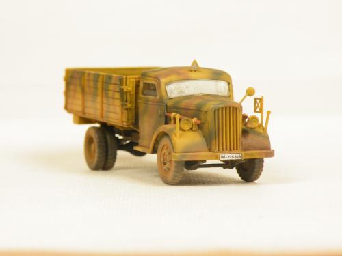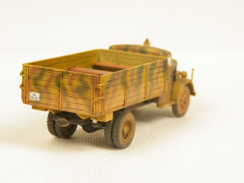 这次的套件使用的是爱德美No.13404 1/72比例的德军欧宝卡车,套件里提供了早期和后期两种车头,我选择了早期型的制作. 整体来说这套模型的组合度一般,车头部分和底盘的组合度都还不错,但是后车厢的组合度有点问题,需要进行一定量的打磨. 我这次在制作中尝试了喷涂三色条纹迷彩,但是因为技术较菜,喷出的条纹还是太粗了点,看来以后还是要多多联系条纹的喷涂才是,其他方面因为是帮朋友制作的模型,鉴于朋友的要求,这次没有进行掉漆和流锈等旧化效果的制作,仅仅是漬洗和干扫而已,算是一个小小的遗憾吧~ 本着重在参与的心态来参加比赛,也借此机会向大家学习学习,还请大伙多指导~谢谢啦!~
