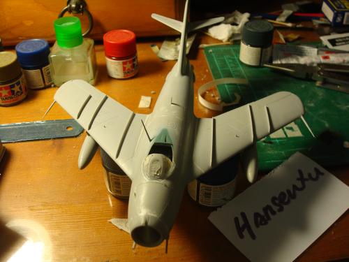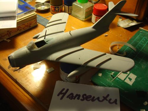 HB 80335 田水漆不太适合做亮度模型表面,颗粒粗。 易模型水贴厚,对软化剂无效,易反光。 板件组合度比较差,要用大量补土填坑及补落差。 新手用大头针补线,很粗糙。 机炮挖孔,添加起落架复位指示。