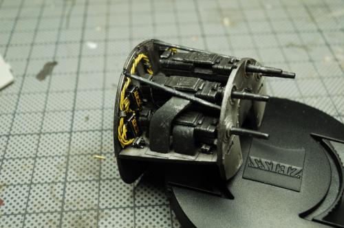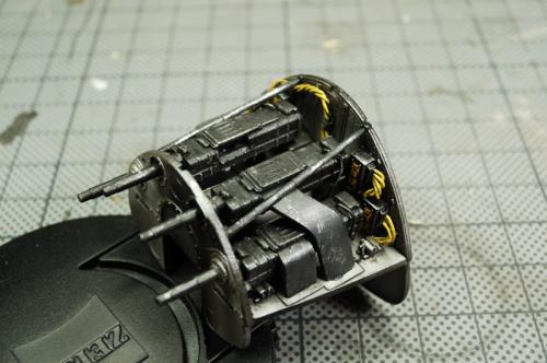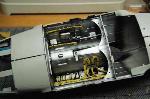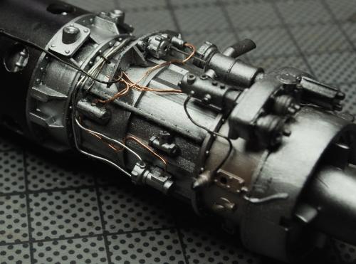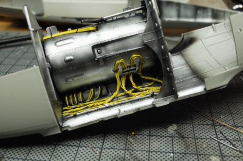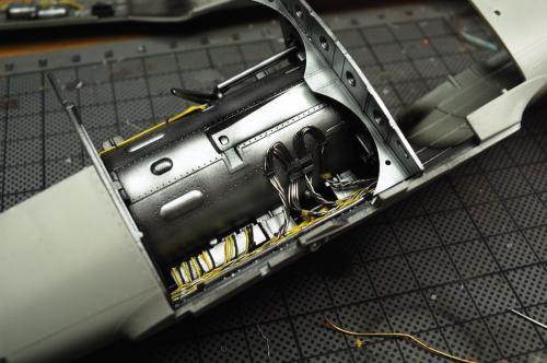 制作中主要进行的改造有:发动机添加管线和自制细节,机炮舱和轮舱添加管线,改造起落架液压部分,自制空速管,O形电线等。另外由于打算以此飞机为基础制作情景模型,故将左发动机做成完全打开展示状态,自制了发动机舱内部细节。