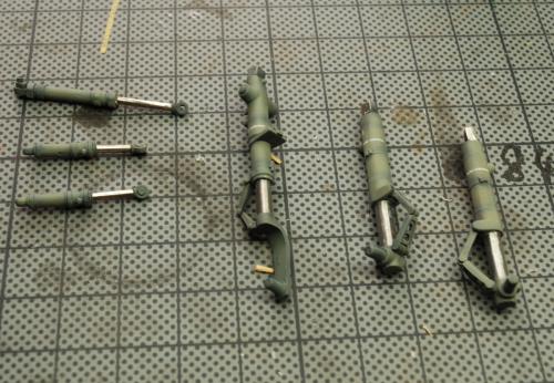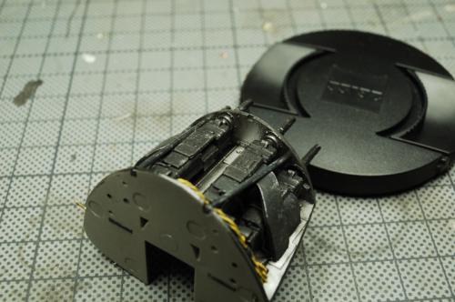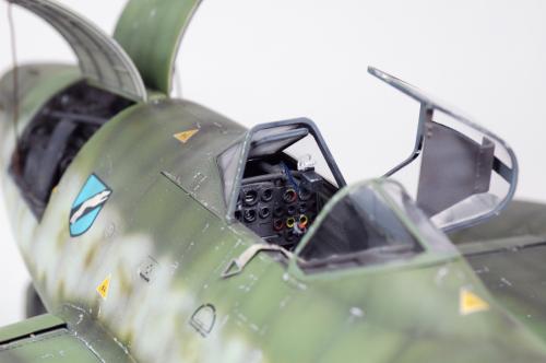 主色使用君士Mr.color的122/123/117喷涂三色迷彩,座舱喷君士116号,轮舱和机炮舱内部为君士8号银,舱盖内部则为君士60号。君士33号黑色和41号红棕色调配稀溶液喷涂后置阴影。