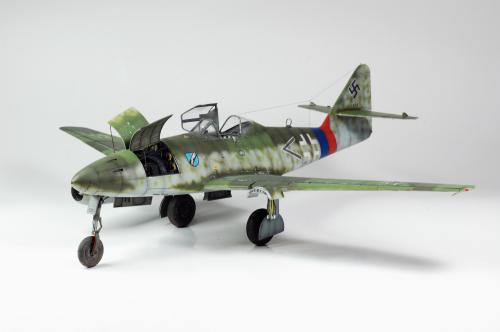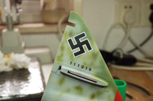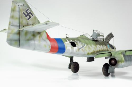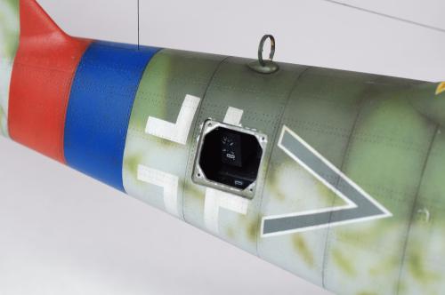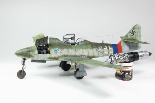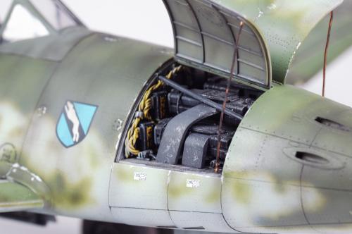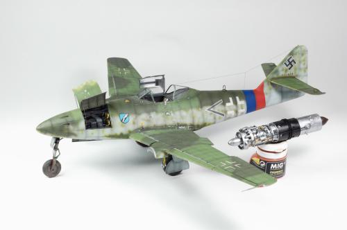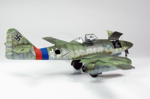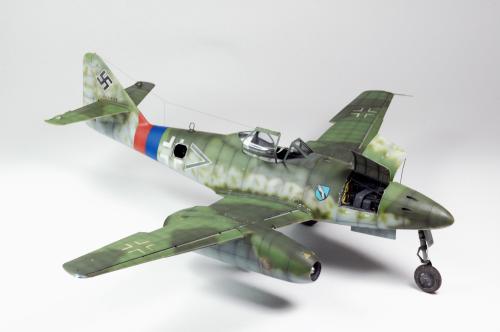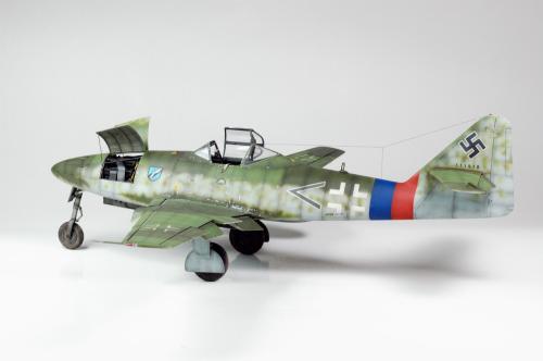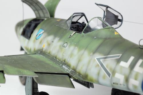 本次制作的涂装采用1945年3月德国空军III./JG 7的Gunther Wegmann中尉的座机涂装。