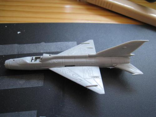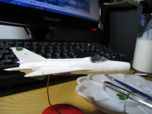 1:144 小号手01325 歼7II 原板件缝隙比较大,刻线深,起落架粗而不准 两翼和机身之间落差1MM 机身打磨了三遍 自制座舱盖 追加液压件,油路管,仪表盘等细节 追加尾部天线细节 用喷罐,田宫水性漆,丙烯颜料分色