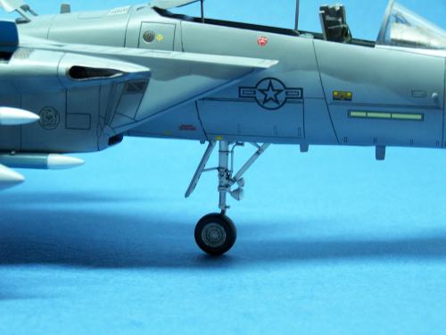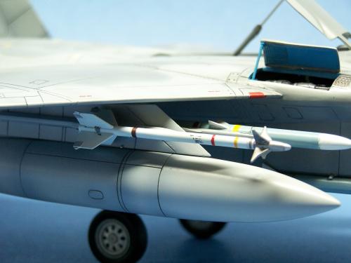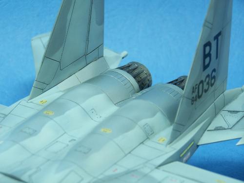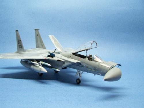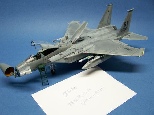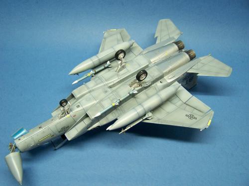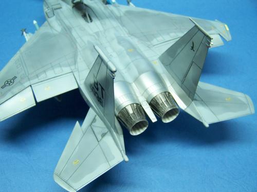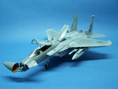 曾经在<模型世界>上看到于狄春先生的F-15E,又在论坛上见到土豆兄的F-15E.真是眼馋啊!也想搞一个.可田宫的实在太贵了!于是就买了一个意大利1:48的F-15C,本来想买E型的,可武器太少了,家里也没有存货.就将就着做C型吧.好在我以前做过一个爱得美的.于是合二为一,把好的版件凑在一起! 首先是把意的座舱换成爱的,因为意的平板座舱加水贴真的很难看,这一点爱的做的很敬业,是立体的. 尾喷也换成爱得美的,相信很多同好都知道意大利的尾喷严重失真! 由于我买不到蚀刻片,所有的小东西都是自己做的,机首雷达舱是用塑料板做的,用铜丝追加了电气线路.雷达天线是用气管接头里的卡簧片做的,反光镜是用铜皮自己裁切的.航炮是用废旧的电气开关用锉锉出来的,所以有很多不到位的地方.用针管替换了顶部减速板的液压杆,这样有看头了很多!座椅上的安全带也是用铜皮做的. 另外,我把爱得美F-15上的麻雀改成了AIM-120,是不是很现代! 涂装没有什么好讲的,做成标准就行了. 我看到网站有比赛后,模型已做好了90%,所以就没有没上色前的照片.请原谅! 我拍的照片实在不怎么样!请各位大侠将就看吧!有空还要好好向各位学习!希望不吝赐教!
