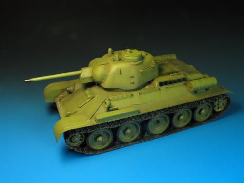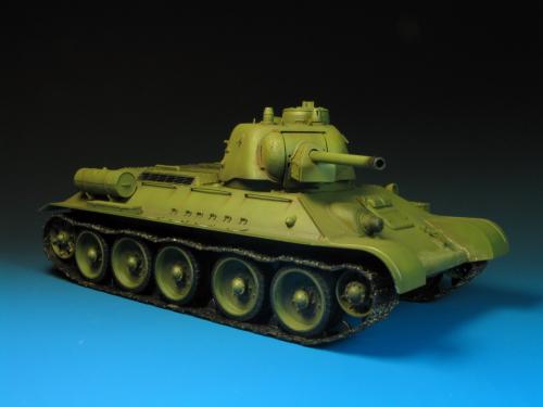 制作采用的是田宫35149,车里雅宾斯克拖拉机厂生产的T-34/76 1943型。改造成OT-34比较麻烦的地方就是炮塔了。