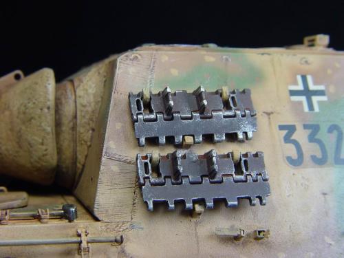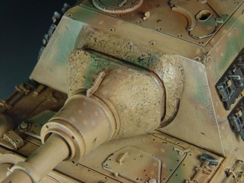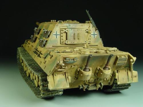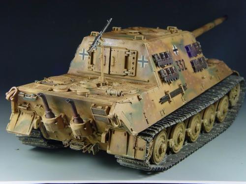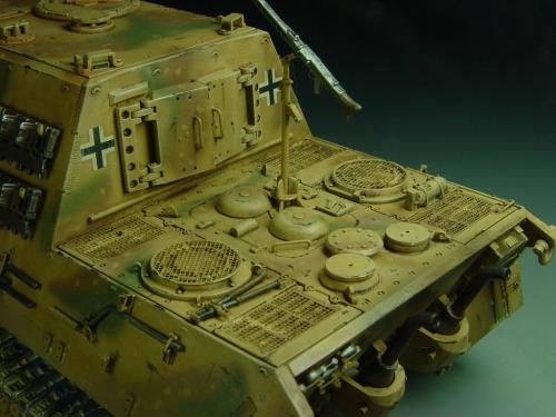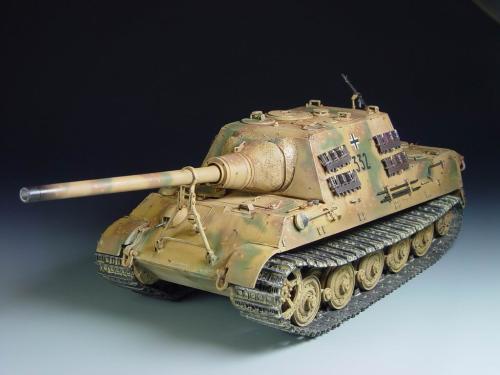 一借季赛完成的阑尾啊。套件用的是龙6050这一经典作品(购于2002年),一直舍不得做,就是怕做坏了。改造用了KMY的虎王片子和挡泥板,效果还是不错的。最费时间的是把履带用手钻改成活动的(一贯作风,呵呵),驱动轮,主动轮也是活动的,拿在手上把玩,心里舒坦啊!