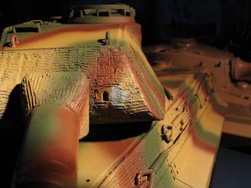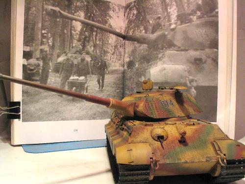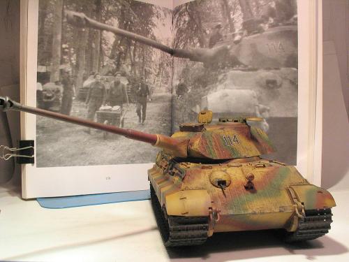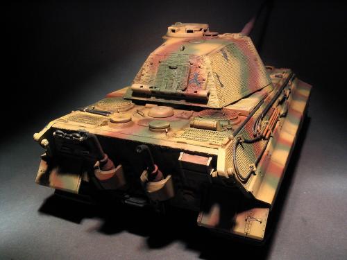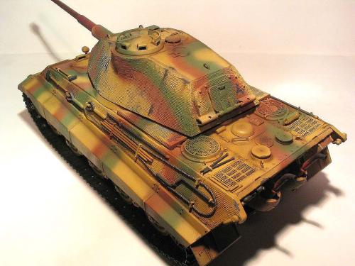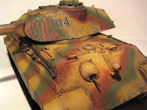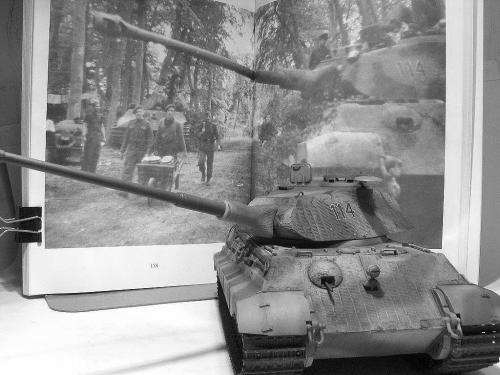 龙的1:35波而舍虎王。先做了防磁。 全车使用水性涂料。 由于时间紧任务重,后续还有进一步的细节没来得及弄。 最头疼的就是履带~~~弄了1天,胶水加暴力搞定。 轻轻洗了下,粉彩扫了线。 根据一历史照片把火炮瞄准口填上一个。