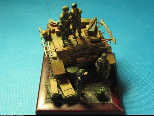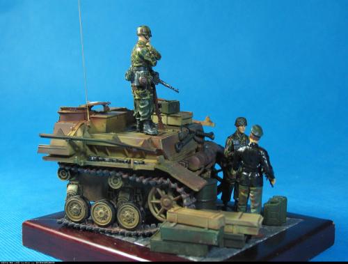 十一假期完成的...平时在学校...也只有假期可以做做模型了... 做的不好..各位大侠嘴下留情... 为了利用有限的空间让内容更丰富...我把一辆四突裁成了一半...算了给人联想空间吧 人物都是龙的...套件不错...让我做垃圾了.... 大家看图吧...