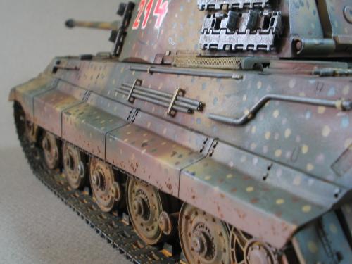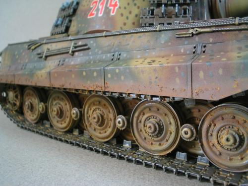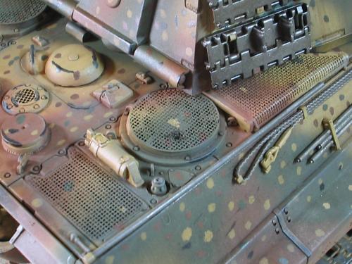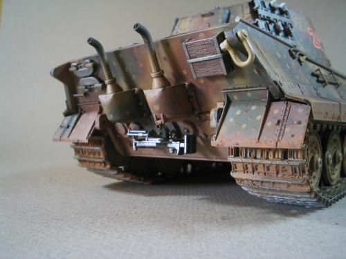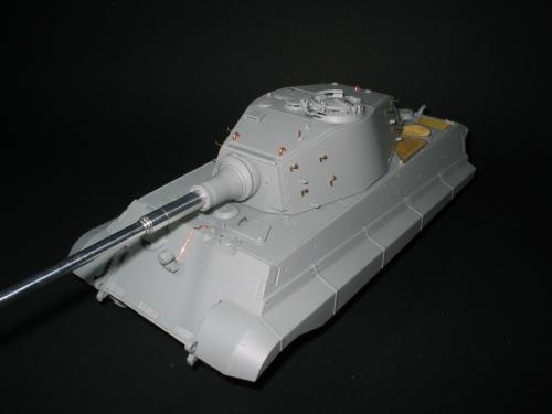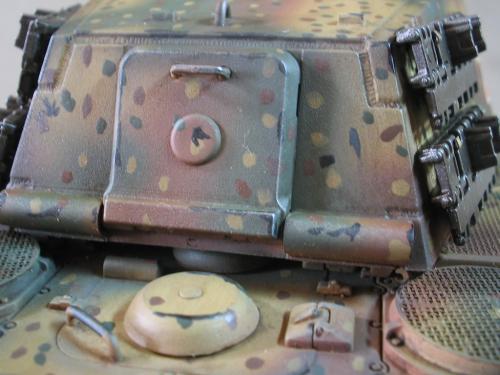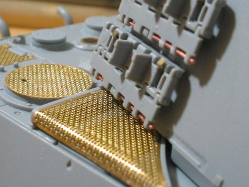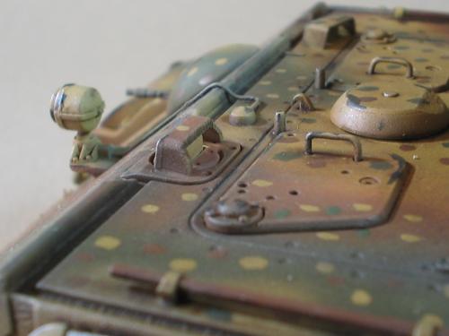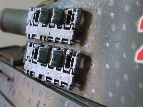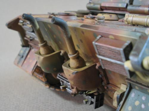 用了龙的套才6254 除发动机进气口和排气口用了蚀刻片,全车按图组装 履带挂钩是用片子的边角料自制的 备用履带钻空穿进铜丝(不知道真实是不是这样) 这次的行走部分按照以前几位高手的指点尝试着旧化