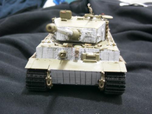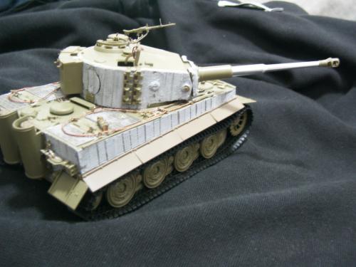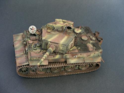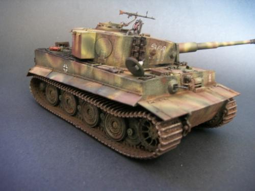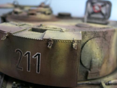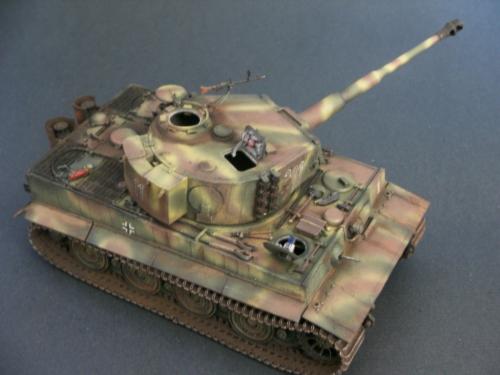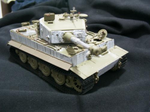 这次使用的是战鹰在去年出的虎1后期型(350790加上KMY92350110的PE,此车体细节丰富,组合度精良,只差在那KMY的PE是配TAMIYA的,所以许多地方不合。 上色前先上水补土,再调出易地种偏暗的红宗色(徳军在涂迷彩前都回上这种颜色的防锈漆),然后就开始上SS102。PZ在诺曼底特有的迷彩,和以往的三色迷彩不同,它的主色是橄榄绿而不是暗黄,把调好的颜色喷好后就要开始旧化了…… 旧化上也没什么不同,摅净-洗-扫-色粉-消光-完成!