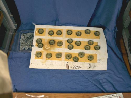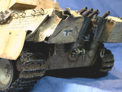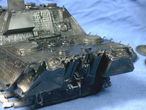 没有偷懒.基本是按步骤来的.有些步骤就不说了,说说主要的.履带是上色后沾上的,水帖是喷了光泽剂后再喷消光效果比较好,