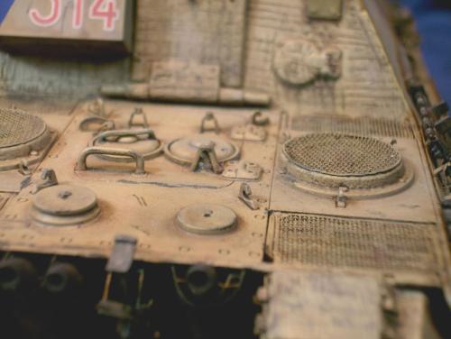 完后的感想: 轮子是自己用塑料薄片制作的漏喷板,履带是上色后沾上的,水帖是喷了光泽剂后再喷消光效果比较好,前前后后这款做了接近半年,终于完工还能碰上个比赛,运气不错哈,算下来是我第一款用蚀刻片的模型,感觉完工后看着细节就是舒服哈!最后请大家多提意见!