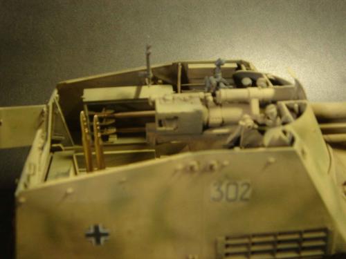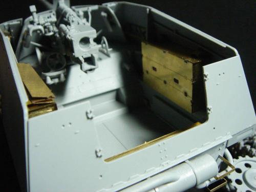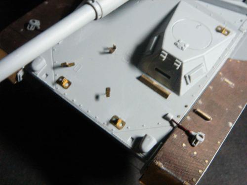 这是原来准备参加上一季度的比赛的 但中途因故耽误了 所以就拖到现在 几经反复 差点成为烂尾 这次使用了狮鸣的蚀刻片(因为沃雅的没有) 考虑到要求用到沃的补品 就选用了最近的沃的新品pak41/43金属炮弹 不过需要提出的是沃的炮弹明显有些长了 装在弹舱里两头已经顶到头了 希望沃雅求证后考虑改进一下 制作上没什么特别的 参考了澳大利亚一个高手的作品(同样使用的是龙的套件和狮鸣的片子) 值得一提的是这次的履带是我加入手钻党的处女作 很是辛苦但也颇有乐趣 最后时间完成的 多少有些仓促 希望大家喜欢