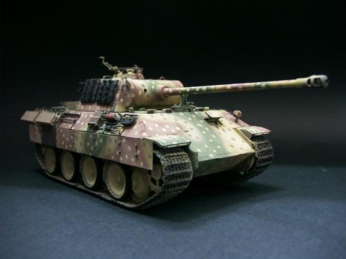 使用的是港龙6160的黑豹A型+沃雅的发动机防护网,由于买不到更多的蚀刻片,所以没有作太多的改造。 我把被景设定在1945年匈牙利的镇上,由于是刚到战场上的,所以也没作啥旧。其制作灵感来自一张杂志上的照片,一辆北欧师的黑豹A型在巴拉顿湖旁奔驰。由于高中课业的烦忙,所以没有足够的时间来制作,还请各位看官多多指教!