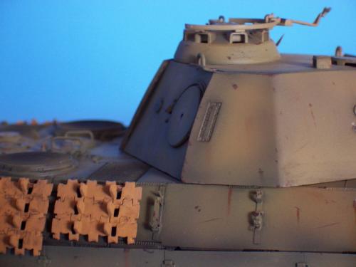 制做较工整,但涂装的着色较重,同时履带旧化较失败,同时掉漆和锈痕失真。摄影方面光源的变化较明显,使得作品出现了不同的颜色变化。