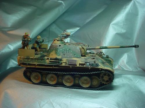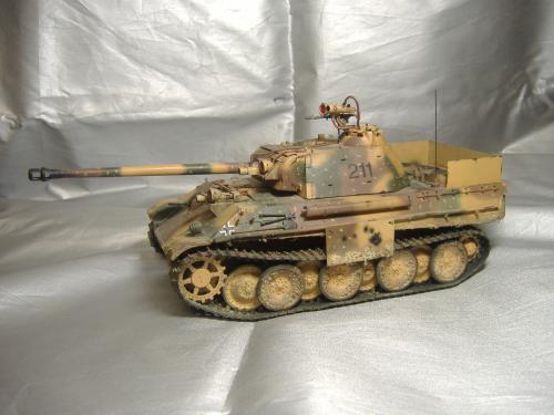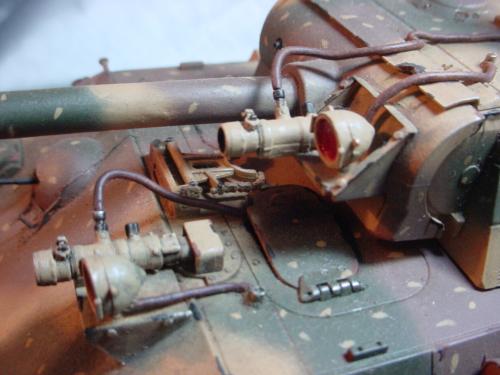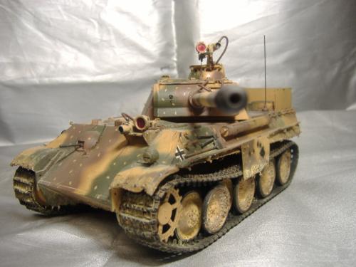 威龙的产品,自制了侧裙板和动力室上的装甲围栏,履带是田的原来的钻成活动的换在田的豹G上了.还用二极管做了红外投射灯做好后只有驾驶员的灯还能亮了.
