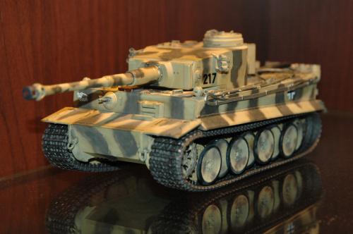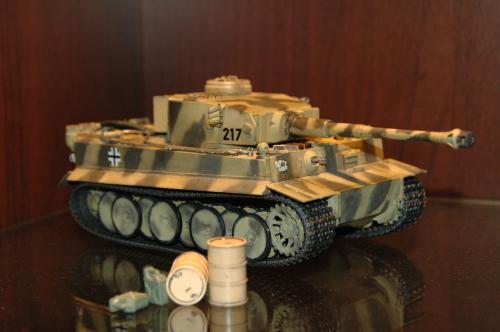 有感于本网站上展示的漂亮模型,故自己试动手制作本人喜欢的虎式坦克,选择了组合较简易的爱德美,迷彩参考了 Mr.Restayn 写的《Inside the Tiger I: Anatomy of a Cat》一书中虎I502迷彩。进展比较顺利,但喷迷彩时,不知是否是用水性漆(田宫)缘故,喷笔间断有水喷出,故补漆是改为手涂,最后做简单的洗渍和干扫。请各位高手多指教。